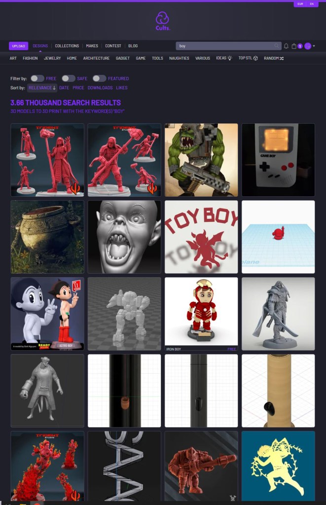 Like any young online community, most 3D printing community websites depend heavily on user content uploads. At the time being12, the user base is leaning toward the male population. While no repository or marketplace has come forth with statistics on its user’s genders, one could easily find the imbalance in the contents of any library.