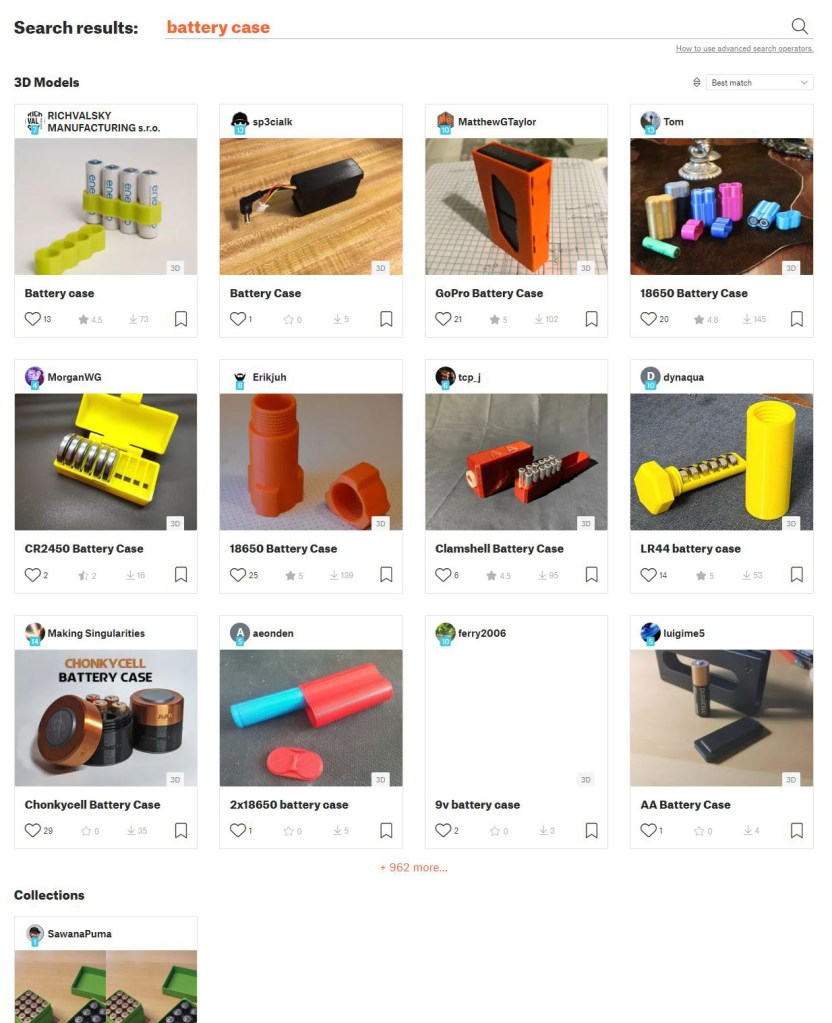 As 3d printing communities grew bigger, some began collecting them all in one place, creating a digital library. This was a platform for all engineers, hobbyists, and DIYers to freely share, edit, remix7, and repost. Thingiverse*, Cults, GrabCAD, Thangs3D, MyMiniFactory, Printables, and even NASA8 are all examples of such online repositories established in the last decade9.